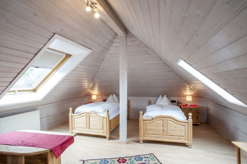 Teilweise großzügige Galeriezimmer mit Wendeltreppe